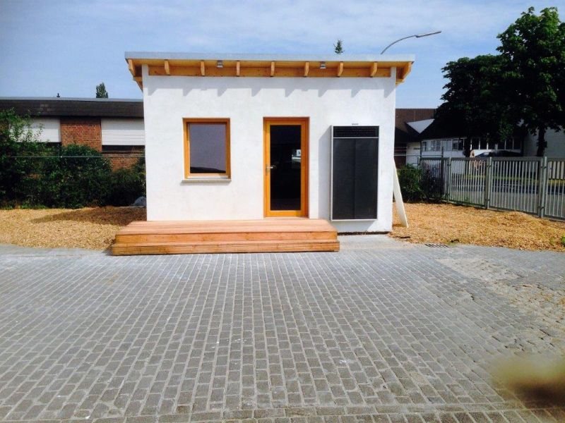 Bevor wir die ersten, selbst entwickelten Baustoffe in die Serienproduktion geschickt haben, wurden diese kurzerhand selbst verbaut. Dieses kleine Musterhäusschen begeistert unsere Besucher durch seine Akustik, das tolle Raumklima und die simple Verarbeitung der Werkstoffe.